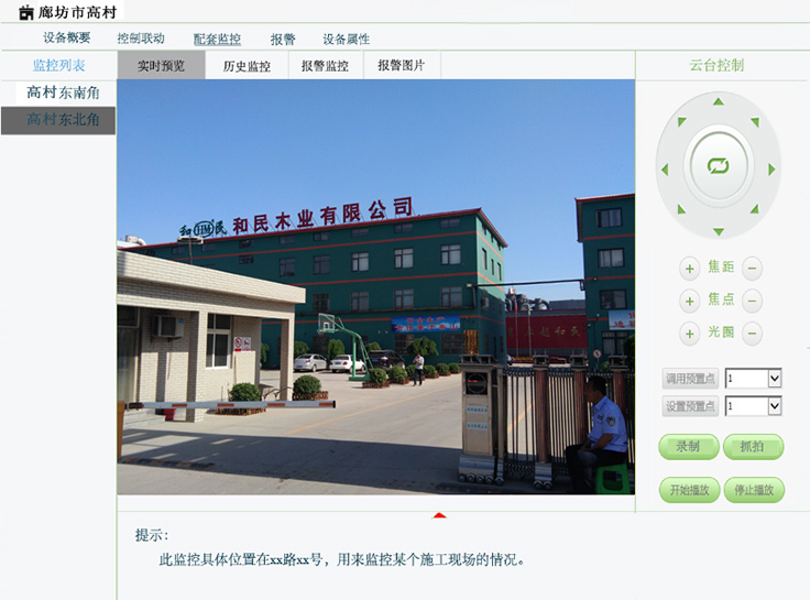 2.可以查看揚塵檢測點位配套的實時監(jiān)控和歷史監(jiān)測。