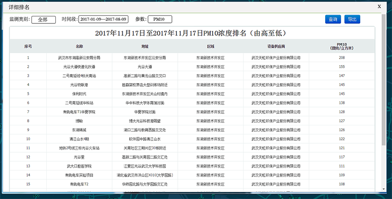 1. 可以對各個監(jiān)測點位進行PM2.5或者PM10參數(shù)進行實時簡單排名或者歷史簡單排名,可以正序也可以倒序。以此可以快速地了解各個監(jiān)測點位的排名。