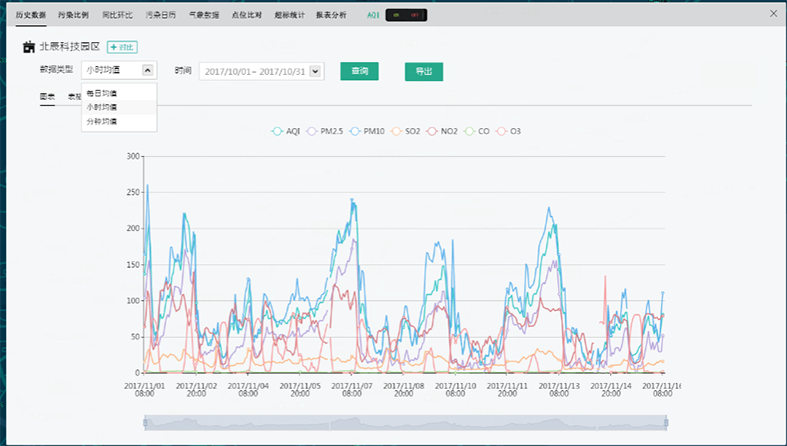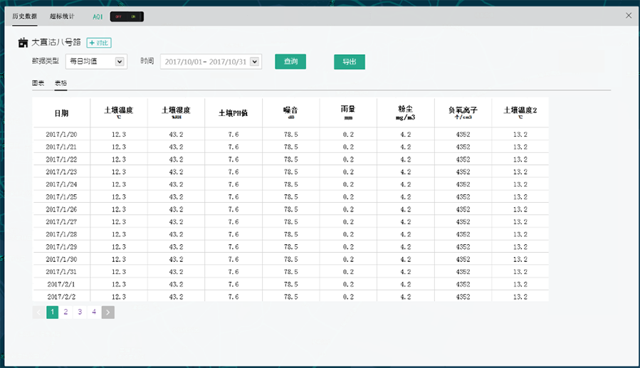 1. 能夠以表格的形式展現(xiàn)歷史數(shù)據(jù)??梢圆煌念w粒程度查看某個時間段內(nèi)的歷史數(shù)據(jù)。針對查詢出的歷史表格還可以做導(dǎo)出操作。