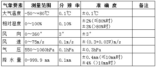 三、自動氣象站技術(shù)指標(biāo)