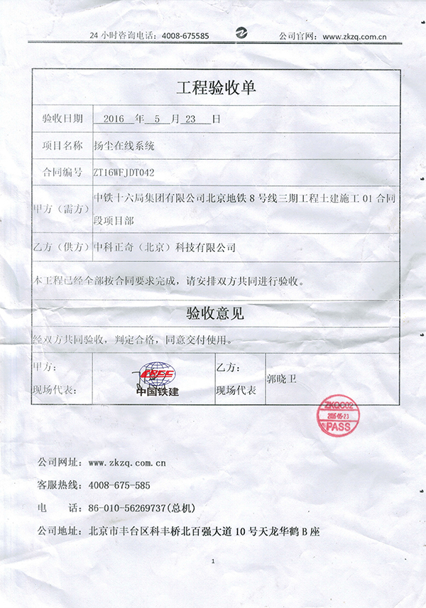 中國鐵建十六局集團——北京地鐵8號線(揚塵在線系統(tǒng))