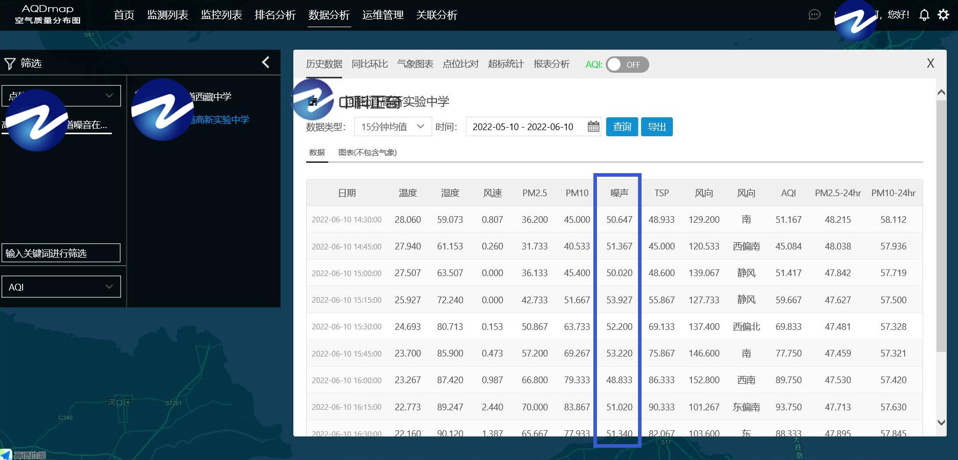 中科正奇ZK-ZS在線噪聲全自動監(jiān)測系統(tǒng),可根據各校需求增加PM2.5、PM10、噪聲、溫度、濕度等環(huán)境數據,結合智能云平臺界面可隨時隨地查看實時數據、歷史數據、同比環(huán)比、氣象圖表、點位比對、超標統(tǒng)計、報表分析、統(tǒng)計曲線、統(tǒng)計柱狀圖高效管理學校噪聲污染