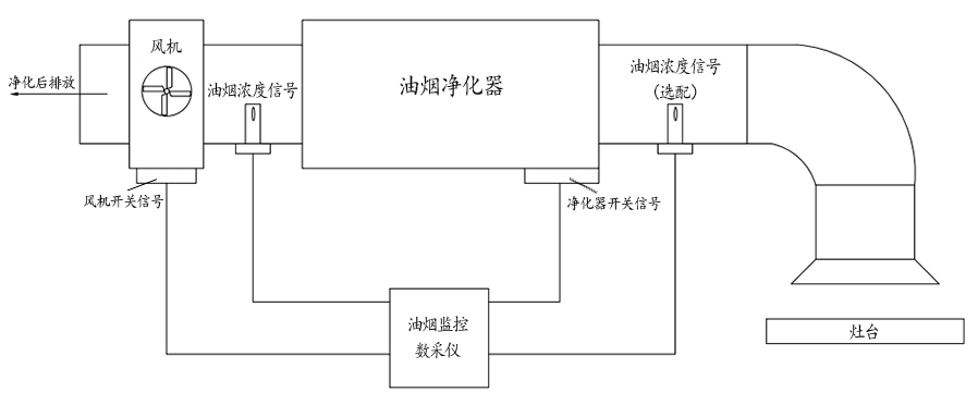 6.多項數(shù)據(jù)監(jiān)測:油煙凈化器開關(guān),風(fēng)機開關(guān)狀態(tài),聯(lián)動比,凈化效率等