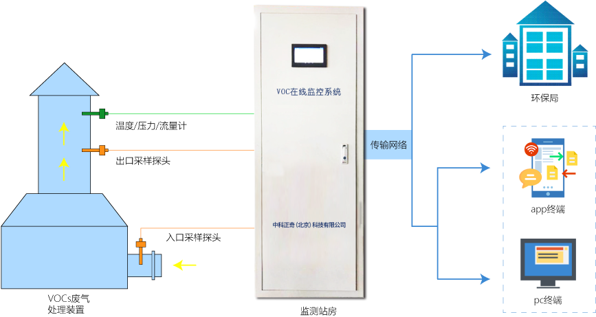 系統(tǒng)由PID原理的VOCs檢測儀,氣體采樣、粉塵分離、氣體預(yù)處理系統(tǒng),聯(lián)動控制、數(shù)據(jù)采集、上傳環(huán)保局平臺等功能組成。