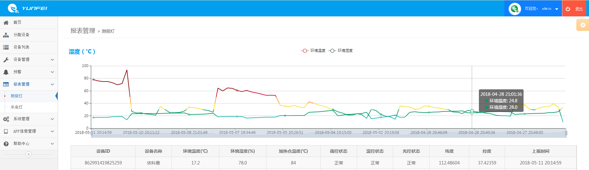 設(shè)備工作歷史數(shù)據(jù)和溫濕度分析曲線圖