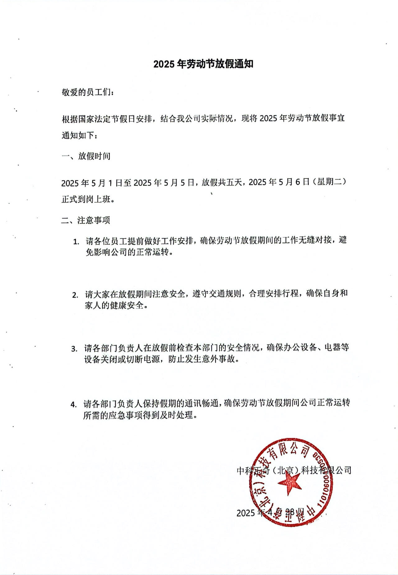 2025年勞動節(jié)放假通知