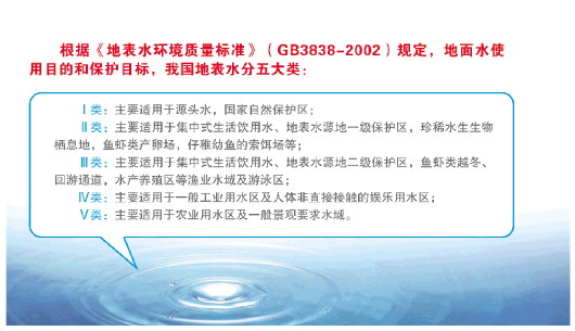 根據(jù)《地表水環(huán)境質量標準》(GB3838-2002)規(guī)定,地面水使用目的和保護目標,我國地表水分五大類: