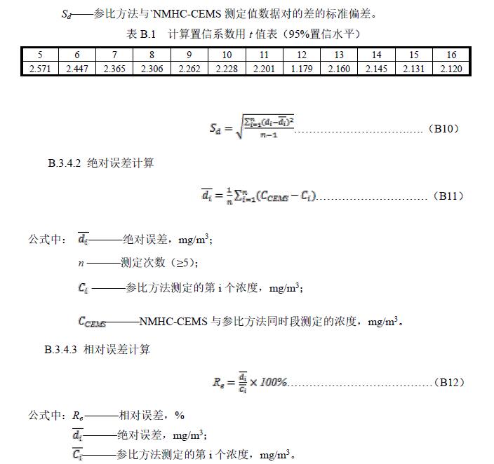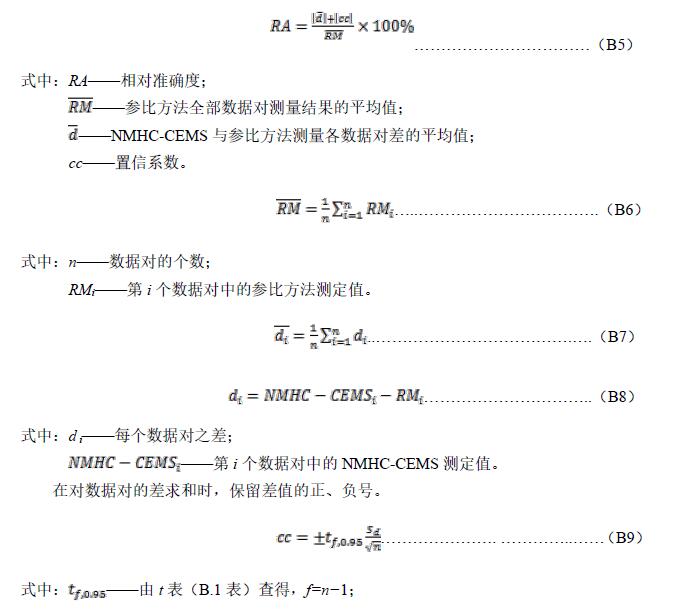 B.4.2 取參比方法與CMS同時段測定值組成一個數(shù)據(jù)對,參比方法與CMS測量值均取標態(tài)干基濃度,每天至少取9對有效數(shù)據(jù)用于準確度計算,但應(yīng)報告所有的數(shù)據(jù),包括舍去的數(shù)據(jù)對,連續(xù)進行3d。