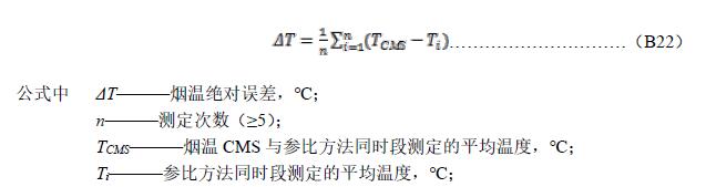 B.7.2 取參比方法與CMS同時段測定值組成一個數(shù)據(jù)對,每天至少取5對有效數(shù)據(jù)用于相對準確度計算,但應(yīng)報告所有的數(shù)據(jù),包括舍去的數(shù)據(jù)對,連續(xù)進行3d。將CMS溫度顯示值減去參比方法斷面測定平均值,計算溫度準確度,按公式(B26)計算溫度絕對誤差: