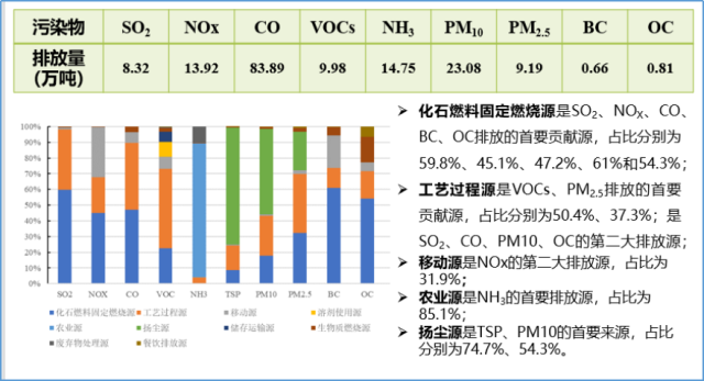 調(diào)查顯示,全區(qū)二氧化硫的主要排放來(lái)源是電力供熱、民用燃燒、建材行業(yè)和冶金行業(yè)。石嘴山市的排放貢獻(xiàn)最大,且無(wú)論是基于國(guó)土面積還是GDP,其排放強(qiáng)度均高于其他城市;其主要排放來(lái)源是碳素生產(chǎn)企業(yè)和冶金企業(yè)。全區(qū)氮氧化合物的主要排放來(lái)源是電力供熱、道路移動(dòng)源、建材行業(yè)以及非道路移動(dòng)源,排放貢獻(xiàn)最大的是銀川市,道路移動(dòng)源、非道路移動(dòng)源、電力供熱行業(yè)是銀川市氮氧化合物的首要貢獻(xiàn)源。全區(qū)PM2.5的主要排放來(lái)源是電力供熱和冶金行業(yè),排放貢獻(xiàn)最大的是吳忠市,其主要排放來(lái)源于冶金行業(yè)。全區(qū)揮發(fā)性有機(jī)物排放貢獻(xiàn)最大的是寧東能源化工基地的石化與化工行業(yè)。