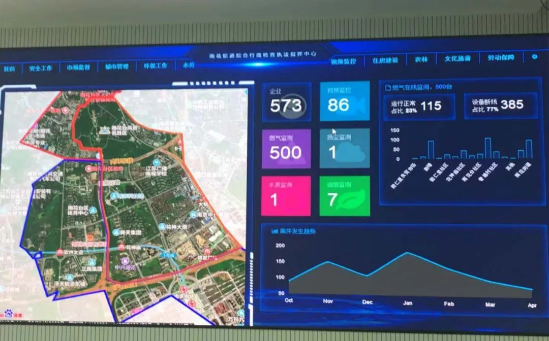 餐飲油煙在線監(jiān)測(cè)已進(jìn)入‘3.0時(shí)代’。”雨花臺(tái)生態(tài)環(huán)境局副局長(zhǎng)李正龍指著有一面墻大小的餐飲油煙在線監(jiān)控智慧平臺(tái)介紹說(shuō)。雨花臺(tái)生態(tài)環(huán)境局依托本區(qū)軟件產(chǎn)業(yè)優(yōu)勢(shì),開(kāi)發(fā)油煙在線智慧監(jiān)控系統(tǒng)軟件,通過(guò)“查、核、督、處、服”形成監(jiān)管閉環(huán)。