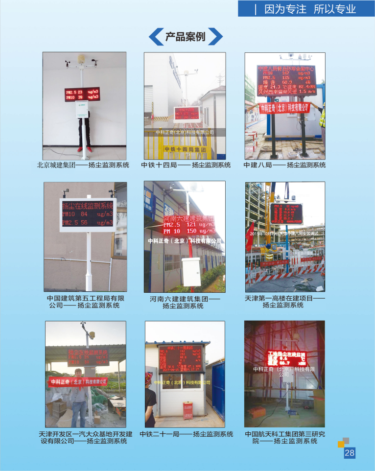 公司旗下?lián)碛卸嗉胰Y子公司和分公司,公司在北京設(shè)有研發(fā)中心和銷售、服務(wù)中心。公司擁有自主知識產(chǎn)權(quán)的十多個系列產(chǎn)品,粉塵認(rèn)證監(jiān)測系列產(chǎn)品有防爆粉塵儀、防爆直讀粉塵儀;環(huán)保認(rèn)證監(jiān)測產(chǎn)品有揚(yáng)塵噪聲在線監(jiān)測系統(tǒng)、揚(yáng)塵在線監(jiān)測系統(tǒng)(β射線)、飲食業(yè)油煙濃度在線監(jiān)測系統(tǒng)、噪聲在線監(jiān)測系統(tǒng);防爆認(rèn)證產(chǎn)品有防爆噪聲監(jiān)測系統(tǒng)、防爆超聲波氣象站監(jiān)測系統(tǒng)、防爆粉塵監(jiān)測系統(tǒng);氣象監(jiān)測產(chǎn)品有超聲波氣象站、光伏氣象站、交通氣象站、農(nóng)業(yè)氣象站、校園氣象站、手持氣象站。