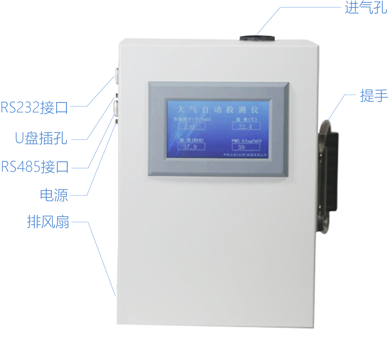 顯示面板:面板上可以看到負(fù)氧離子、PM2.5、溫度、濕度。