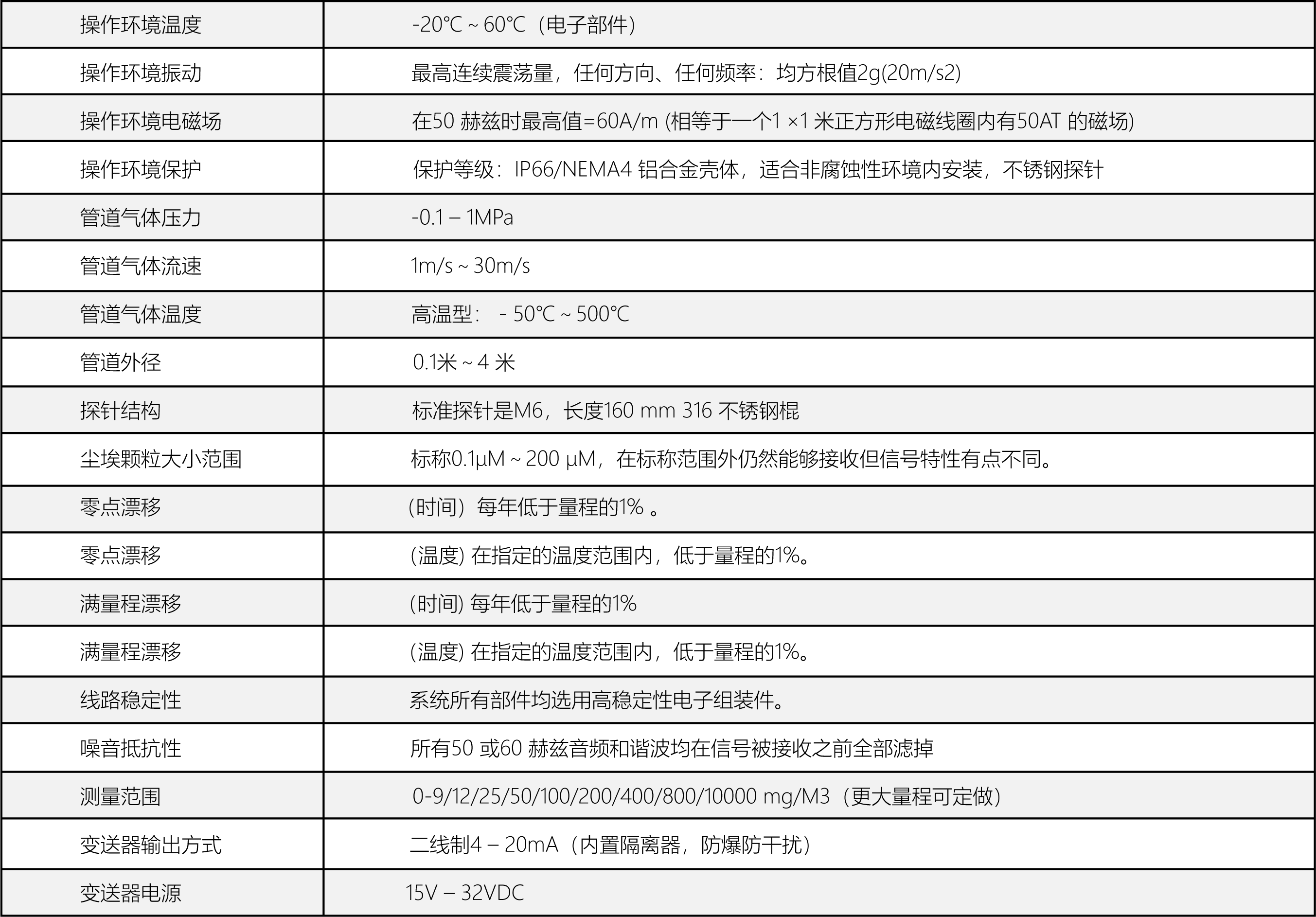 儀器系列裝置提供先進(jìn)交流耦合技術(shù),更適合連續(xù)排放記錄和數(shù)據(jù)累積。本監(jiān)測系統(tǒng)工作原理是運(yùn)用塵埃粒子流經(jīng)探針周圍所產(chǎn)生的電荷感應(yīng)來確認(rèn)塵埃粒子排放濃度(mg/m3)或在線排放量(mg/sec)。在燃燒工況相對穩(wěn)定的情況下(即在同一個排放點(diǎn)上,流速、溫度、壓力、濕度和煙塵顆粒性質(zhì)都沒有很大的變化,小于±90%的變動)。本系統(tǒng)經(jīng)直接校定后也可用于在線監(jiān)測排放濃度(單位=mg/M3)。