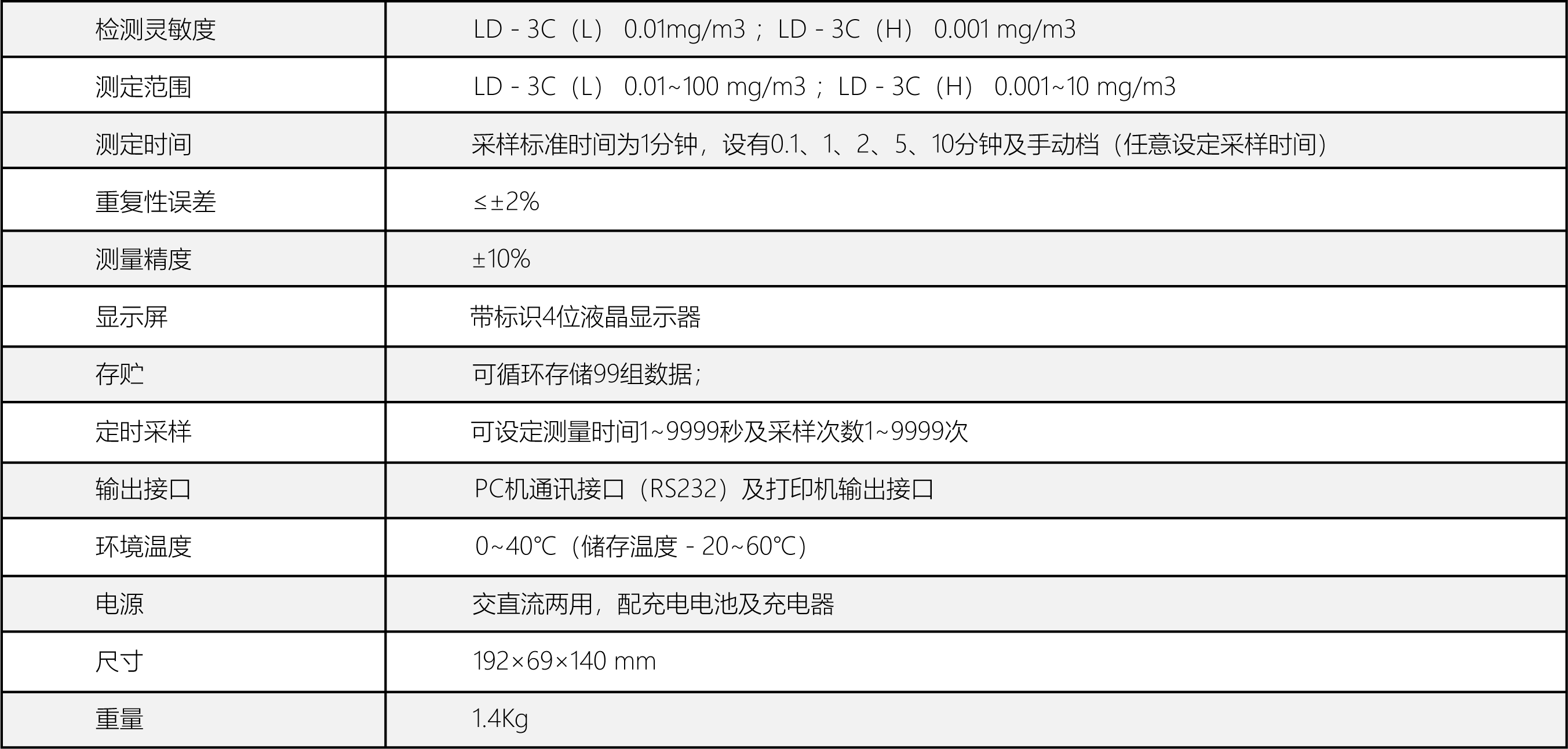 符合勞動部行業(yè)標(biāo)準(zhǔn)LD98-1996《空氣中粉塵濃度的光散射式測定法》