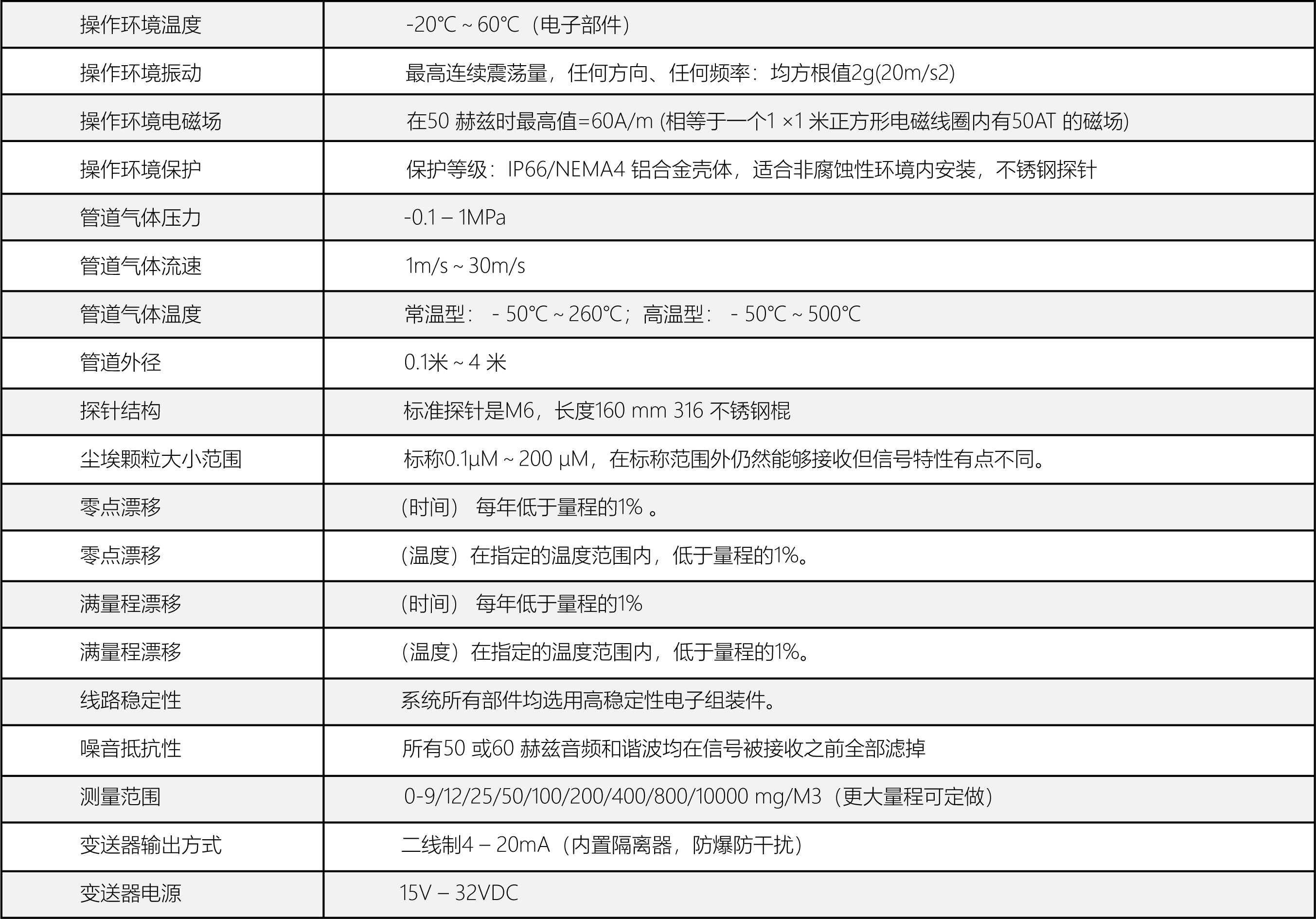系統(tǒng)裝置提供了先進(jìn)交流耦合技術(shù),更適合連續(xù)排放記錄和數(shù)據(jù)累積。本儀器監(jiān)測(cè)系統(tǒng)工作原理是運(yùn)用塵埃粒子流經(jīng)探針周?chē)a(chǎn)生的電荷感應(yīng)來(lái)確認(rèn)塵埃粒子排放濃度(mg/m3)或在線(xiàn)排放量(mg/sec)。在燃燒工況相對(duì)穩(wěn)定的情況下(即在同一個(gè)排放點(diǎn)上,流速、溫度、壓力、濕度和煙塵顆粒性質(zhì)都沒(méi)有很大的變化,小于±90%的變動(dòng)),本系統(tǒng)經(jīng)直接校定后也可用于在線(xiàn)監(jiān)測(cè)排放濃度(單位=mg/M3)。